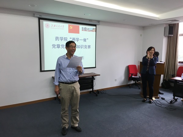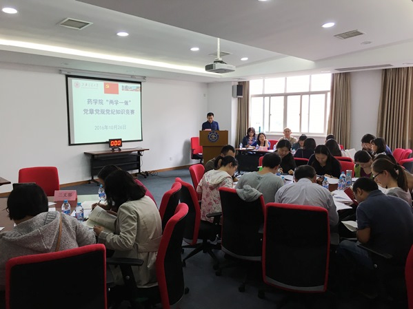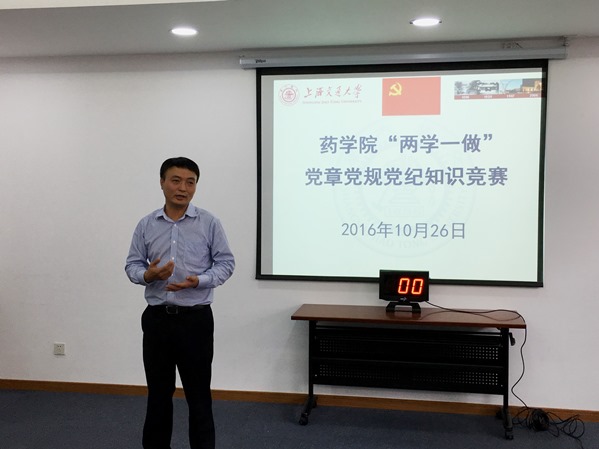 10月26日,成人视频 举行“两学一做”党章党规党纪知识竞赛,学院党委书记刘明柱、副书记钱秀萍、康健参加活动,学院党委委员李晓波教授担任主持人,校党委组织部王震副部长出席活动,发表讲话并为获奖队伍颁奖。