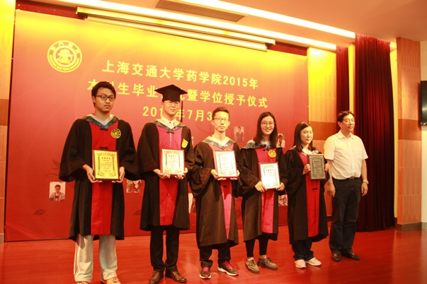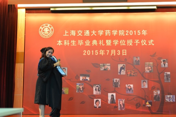 7月3日下午,学院欢送毕业生的重要活动——成人视频 2015届本科生毕业典礼暨学位授予仪式在生物药学群楼树华多功能厅举行。院党委书记刘明柱、院长朱建伟,副书记康健、副院长李晓波及学院张宝红老师、本科教务刘晓侠老师、班主任刘德龙老师和全体学生及部分家长出席毕业典礼。毕业典礼上,朱建伟院长寄语2015届毕业生,在祝贺同学们毕业的同时,也对他们寄语厚望,深深祝福他们有璀璨的明天。刘明柱书记为获得2015届上海市优秀毕业生和成人视频 优秀毕业生颁发奖牌。毕业生代表肖汉同学在发言中回顾了大学四年的点点滴滴。随后,毕业生们逐一上台,朱建伟院长为每一位同学拨穗正冠、授予学位证书并合影留念。