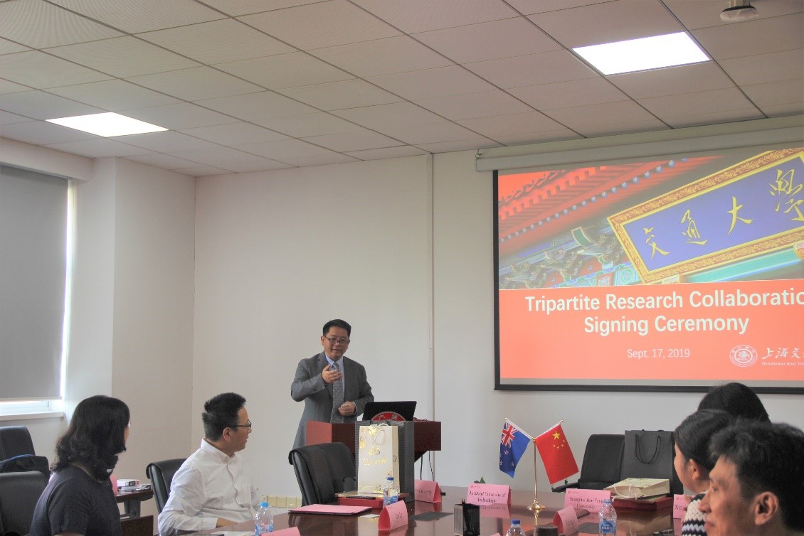 Andrew Robinson对上海交大和成人视频 的热情接待表示感谢。他说,中国是新西兰全球五大研究合作伙伴之一,他们认识到中国一直致力于加强东部和西部地区合作与发展,他们也在积极寻找新西兰可以参与其中的机遇。该协议的签订正体现了新西兰与中国在科学研究领域的联系。奥克兰理工大学与上海交大、复旦大学、新疆大学的合作将跨越生物医学、心理学、心理健康、公共卫生、食品科学等医药卫生研究领域,为四所大学今后更进一步的交流开辟了新的篇章。