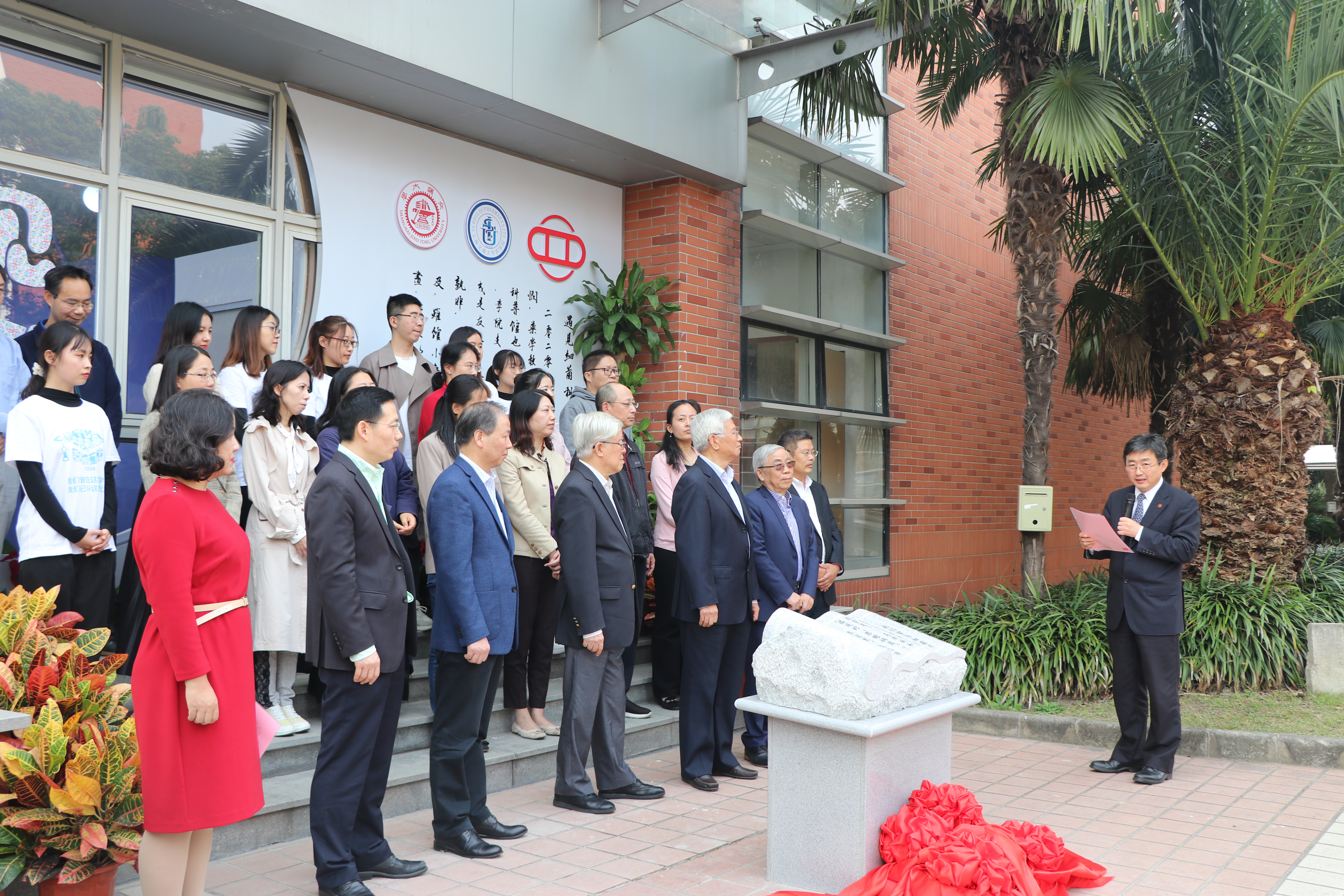 丁奎岭院士在仪式上致辞。他讲到,科技是国家强盛之基,创新是民族进步之魂。早在2016年,习近平总书记就在“科技三会”上指出,科技创新、科学普及是实现创新发展的两翼,要把科学普及放在与科技创新同等重要的位置。没有全民科学素质普遍提高,就难以建立起宏大的高素质创新大军,难以实现科技成果快速转化。陈代杰教授在抗生素研究领域深耕38年,具有丰富的科研和教学经验,他和他的团队对科普事业充满热情,有着高度的社会责任感。“遇见细菌”科普馆,从内容到形式,设计到实施,都倾注了他们大量心血。希望科普馆的建成,为科技创新人才培育,提供更加深厚的土壤,让更多师生群众在细菌的研究历史中体会科学的力量。