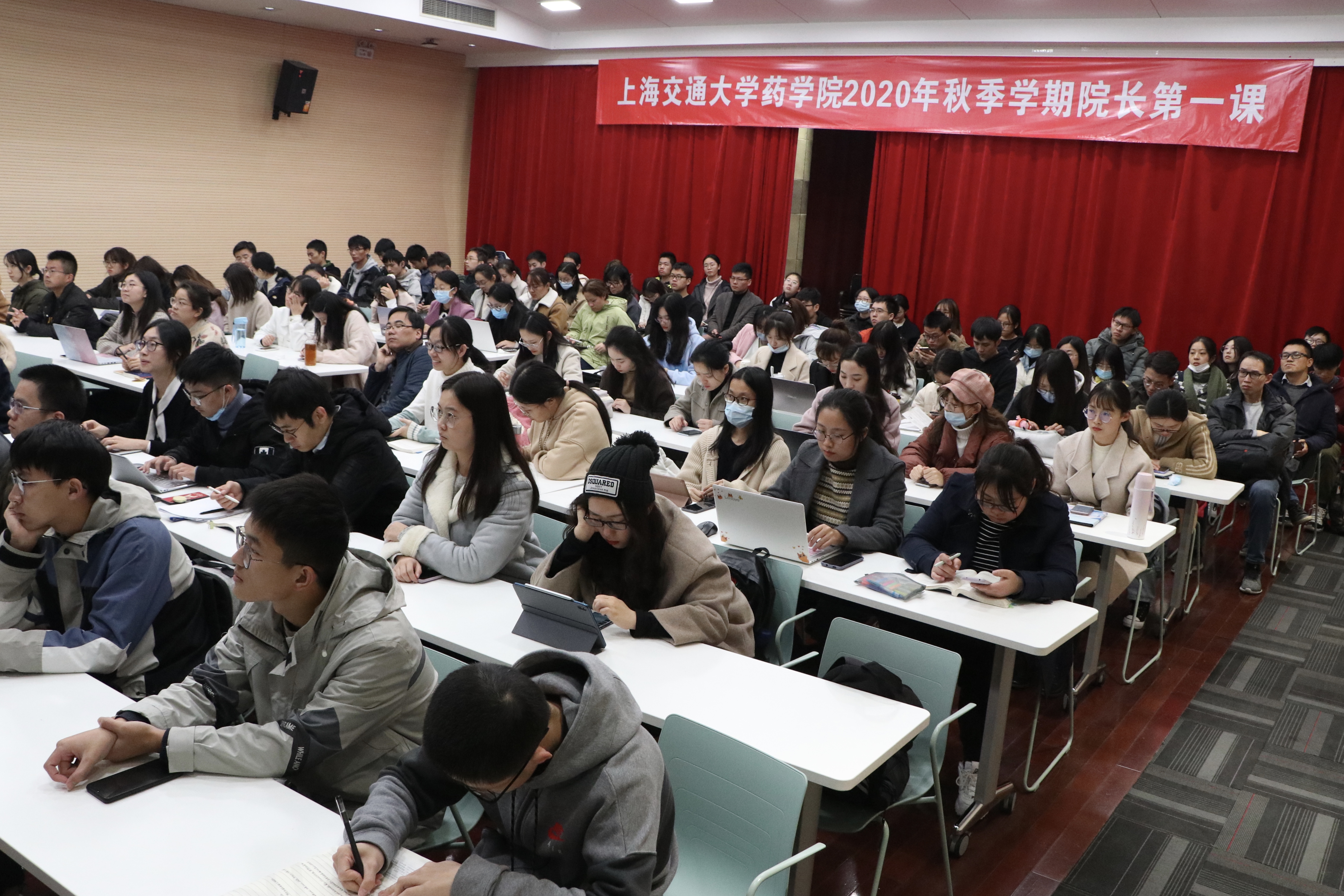2020年11月30日下午16:00,成人视频 “院长第一课”在药学生命楼树华多功能报告厅举行。院长、特聘教授张翱以 “新起点、新定位、新目标,三‘新’闪‘药’ 新一代成人视频 人”为主题作报告。成人视频 党委副书记孟祥琦与全体2020级新生参加活动。