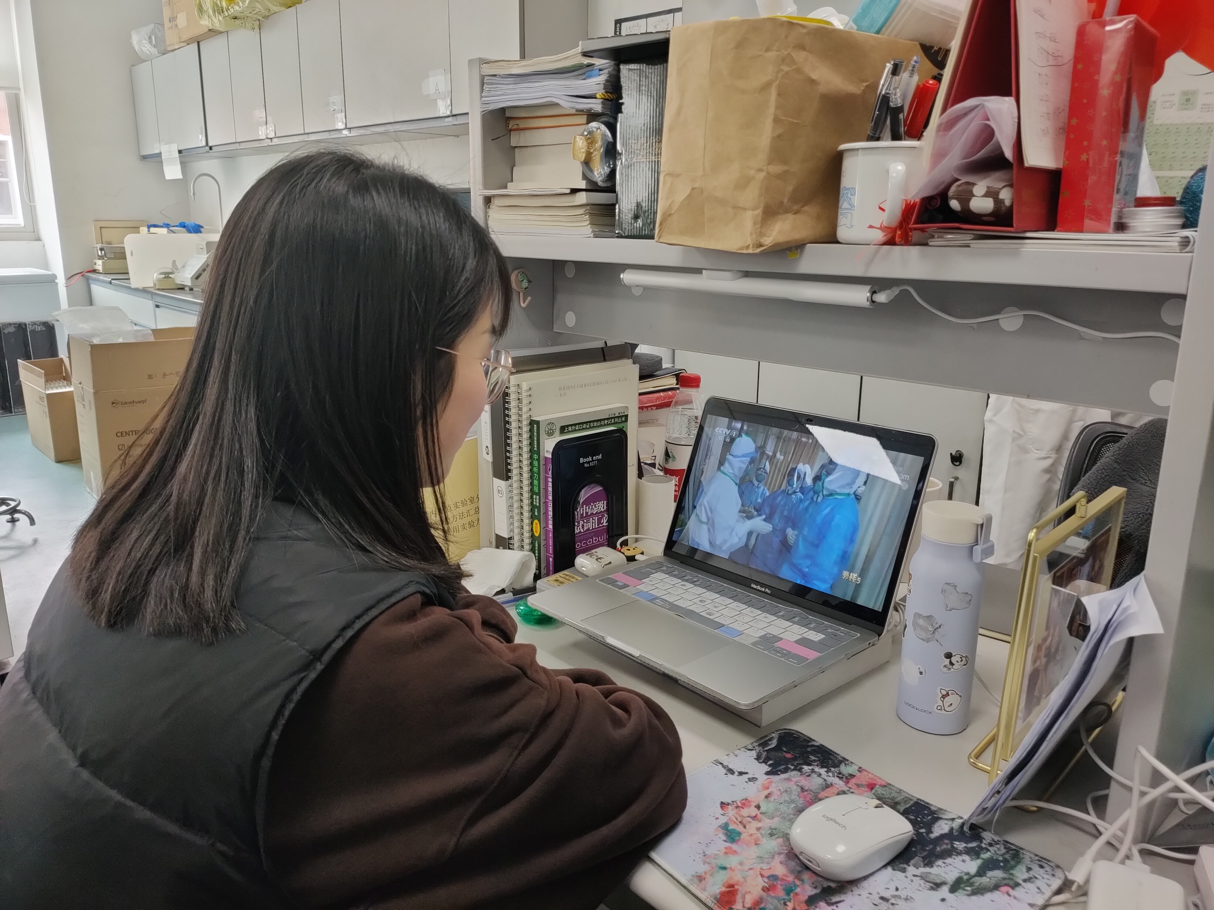 学生党员收看直播