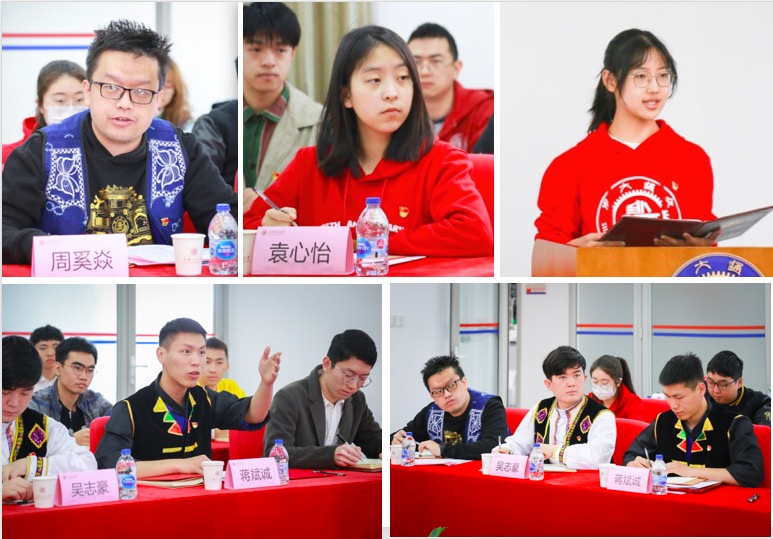 支部刘金钊同志从重要意义、重点内容、工作要求三个方面,带领大家集体学习了习近平总书记在党史学习教育动员大会上的重要讲话精神,并畅谈了个人的学习体会。胡海、王思懿、吴紫薇(蒙古族)三位同志分别配乐朗诵了《茅坪写春联》《布袋里的口粮》《天坑开路人》等3个党史故事,讲述了我们党不同时期的典型事例、历史人物和难忘记忆。周奚焱(白族)、袁心怡、吴志豪(回族)、蒋斌诚(佤族)、陈清璇五位同学分享了自己的入党故事,讲述了自己的入党初心。周奚焱谈到,他入党的种子是由家人播种,在党的光辉下,他的父亲从一个贫苦的少数民族少年成长为一个基层领导干部;求学期间,他们兄弟的家长会父亲只去了3次,但工作却从未缺席。袁心怡讲述了自己外公外婆在前哨农场插队落户的故事,提到在外公外婆的影响下,她从小就对党怀有强烈的敬意,立志成为家中第一名光荣的党员。吴志豪提到,入党,是因为那份还不完的恩情;他自己是党对少数民族地区教育关怀帮扶政策的受益者,亦是新疆这些年来脱贫攻坚发生沧海桑田之变的见证者。蒋斌诚说到,回想自己的入党故事,其实也是个人成长的蜕变故事;通过不断向身边优秀党员同志学习,在党组织的教育、培养下,他收获了成长,从一个“后进生”转变为校“三好学生标兵”。陈清璇谈到,自己坚定的入党志愿植根于她对中国这片土地的热爱,强调要用党的理论武装自己,用行动书写对这片土地的爱。