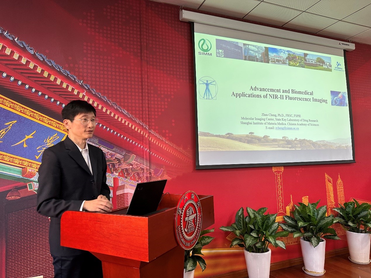11月2日,中国科学院上海药物研究所分子影像中心主任程震博士受邀访问成人视频 进行学术交流活动,并作《NIR-Ⅱ光学成像技术研究及生物医学应用》的学术报告。成人视频 院长张翱主持报告会,相关师生代表50余人参加。