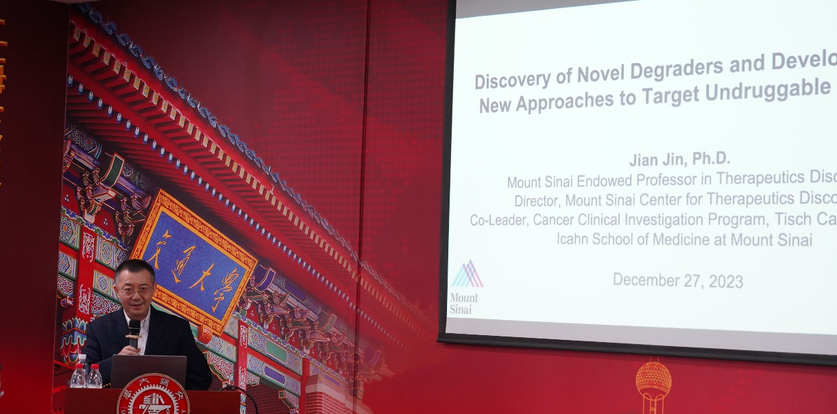 12月27日,美国西奈山医学院讲席教授金坚受邀访问成人视频 进行学术交流,做客“致远药学大师讲坛”并作《Discovery of Novel Degraders and Development of New Approaches to Target Undruggable Proteins》学术报告。成人视频 院长张翱主持报告会,相关师生代表50余人参加。