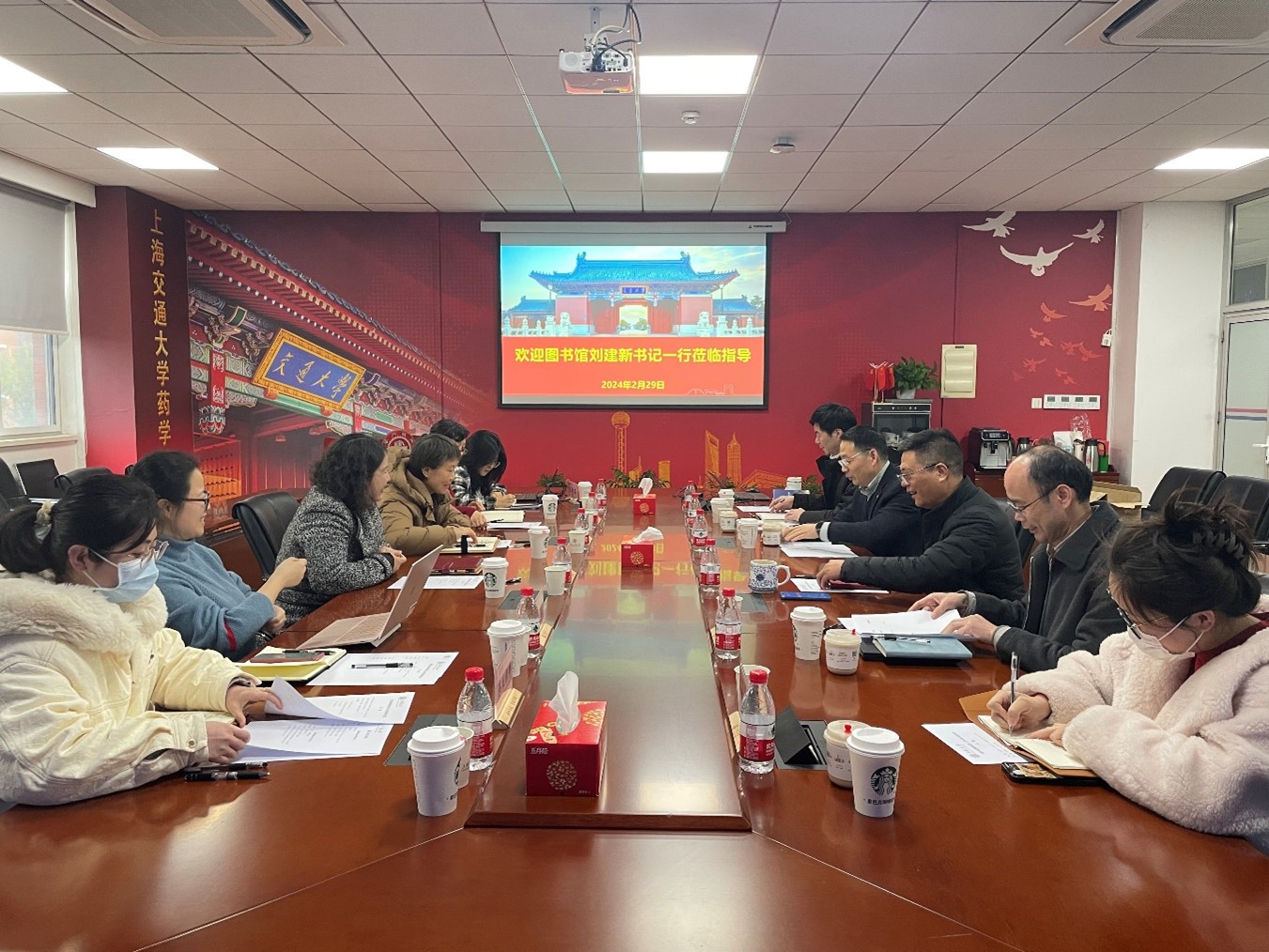 2月29日下午,成人视频 图书馆党委书记刘建新、副馆长潘卫,研究支持中心老师等一行到访成人视频 ,调研交流成人视频 人才建设情况,学院党委书记彭树涛、院长张翱、院长助理邓刘福等出席。