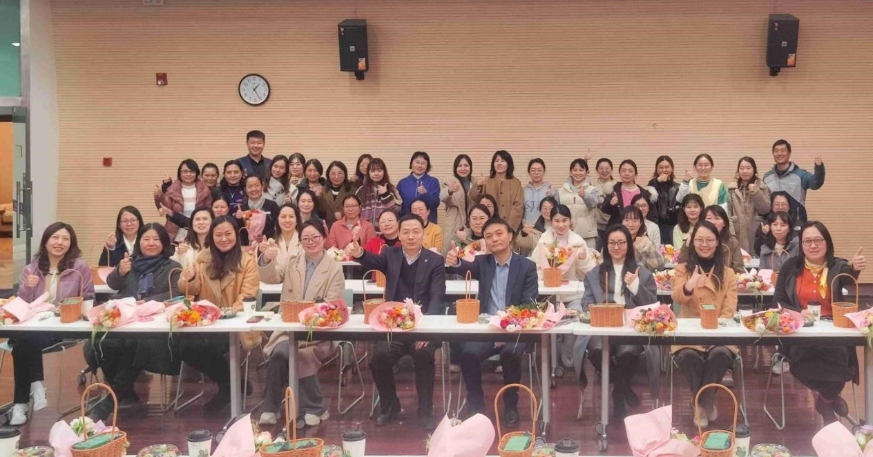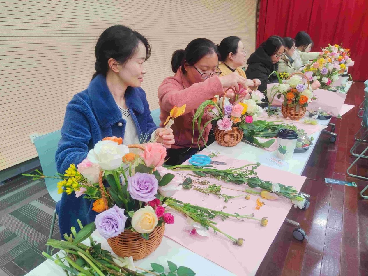 会后,学院工会组织女教职工们前往树华报告厅开展花艺沙龙,教师们在轻松愉悦的氛围中体验插花艺术的乐趣,共同度过温馨的节日。