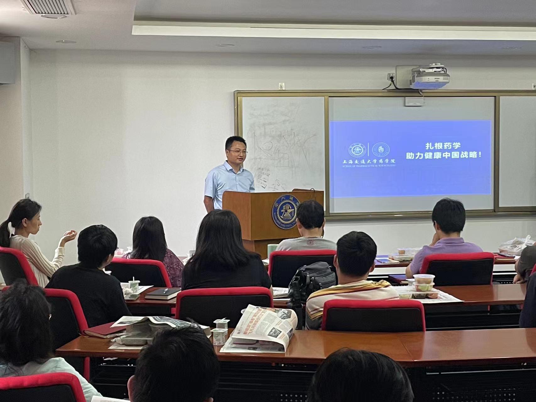 孙占奎为参会的师生党员同志作《学习习近平新时代中国特色社会主义思想,努力深耕药学领域,积极服务健康中国战略》的专题党课,指出成人视频 的发展已进入最好的发展时期,勉励药学师生要勤练科研本领,勇攀科研高峰,努力在药学领域建功立业,共同促进学院高质量发展。