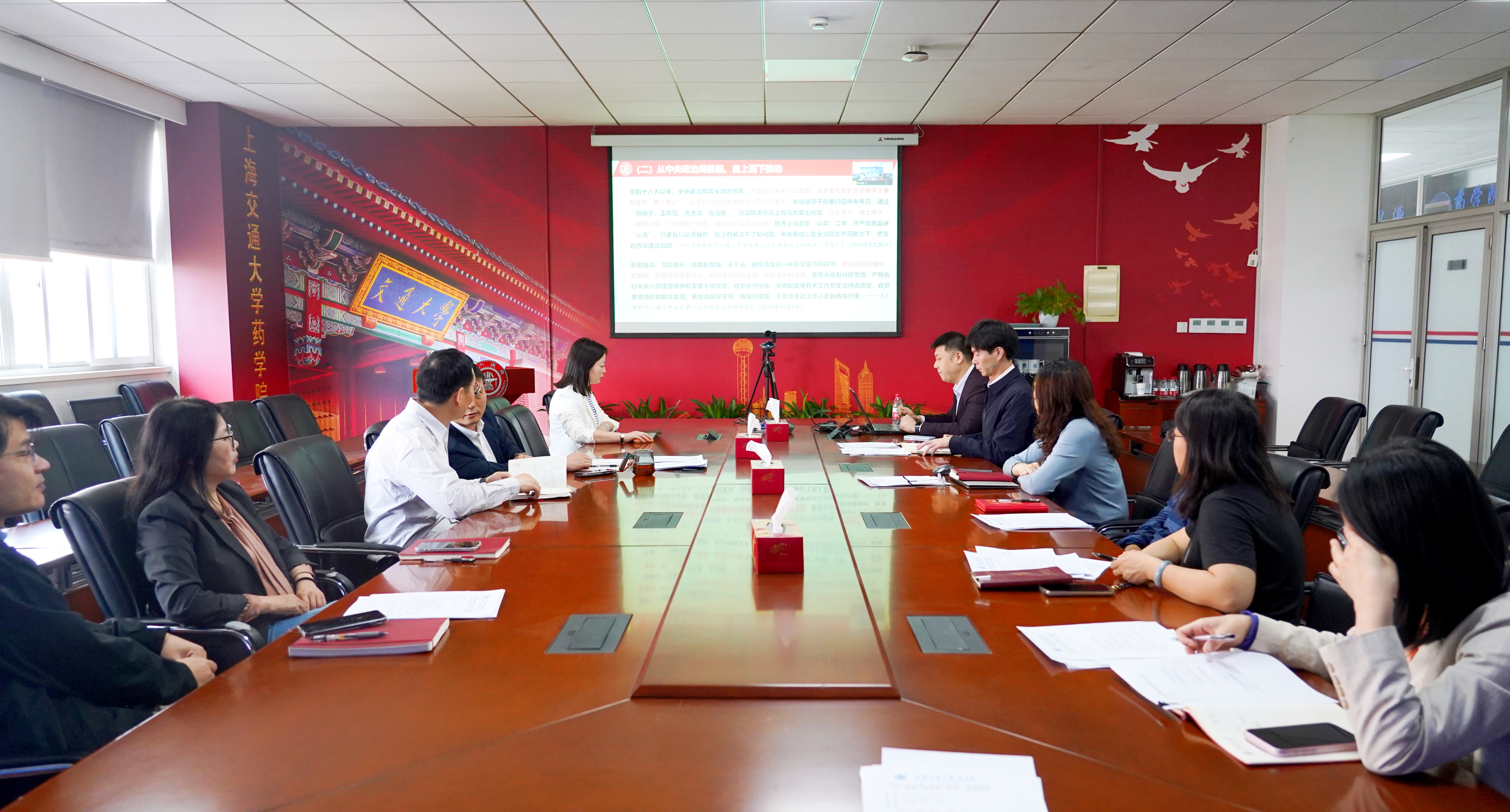 4月21日,成人视频 党委理论学习中心组开展专题学习研讨会,深入贯彻中央八项规定精神学习教育。党委书记王震,院长张翱及理论学习中心组成员参加会议,会议由党委副书记汤淏溟主持。