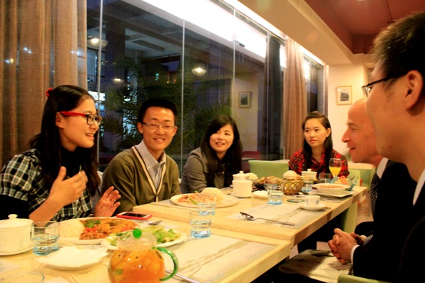 座谈会结束之后,Kornberg教授在成人视频 傅磊教授、周虎臣教授的陪伴下,与九名学生代表在校园咖啡厅共进晚餐。Kornberg教授不仅与同学们分享了自己对于科研、家庭与人生经历的思考,还谈论了自己对于21世纪世界经济一体化的理解与感悟。Kornberg教授说此行是他第六次来到中国,他目睹了中国20多年来日新月异的发展,上海是一个充满魅力的城市。同学们一一回答了Kornberg关于校园生活、职业发展和兴趣爱好的问题,他高度评价了同学们流利的外语表达能力和广阔的国际视野。