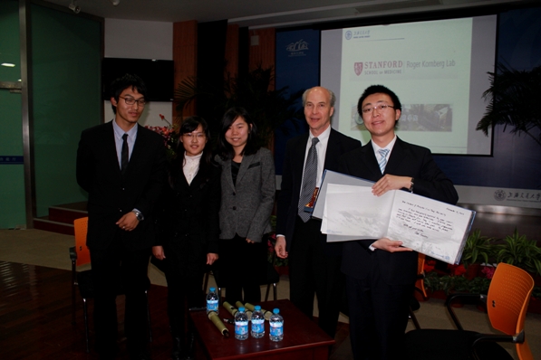 2012年11月13日,成人视频 第二期帕米尔讲坛顺利落下帷幕。诺贝尔奖化学奖获得者、斯坦福大学教授Roger D. Kornberg除了给交大师生带来一场精彩讲座之外,还与学生代表进行了亲切愉快的座谈并共进晚餐。