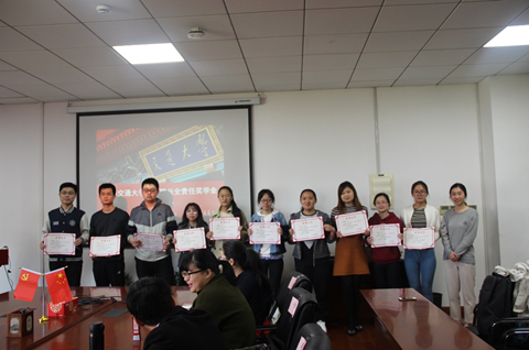 高杏老师和孟祥琦老师分别为二等奖学金获得者和一等奖学金获得者颁发获奖证书,并合影留念。大家用热烈的掌声对获奖同学表示祝贺。