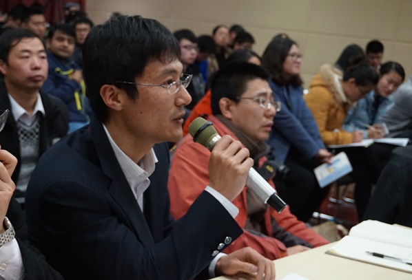 在学术报告后的互动环节,在场的师生踊跃向教授提问,教授不厌其烦地耐心进行了解答。上午的活动在一片热烈的学术讨论的氛围中接近尾声。