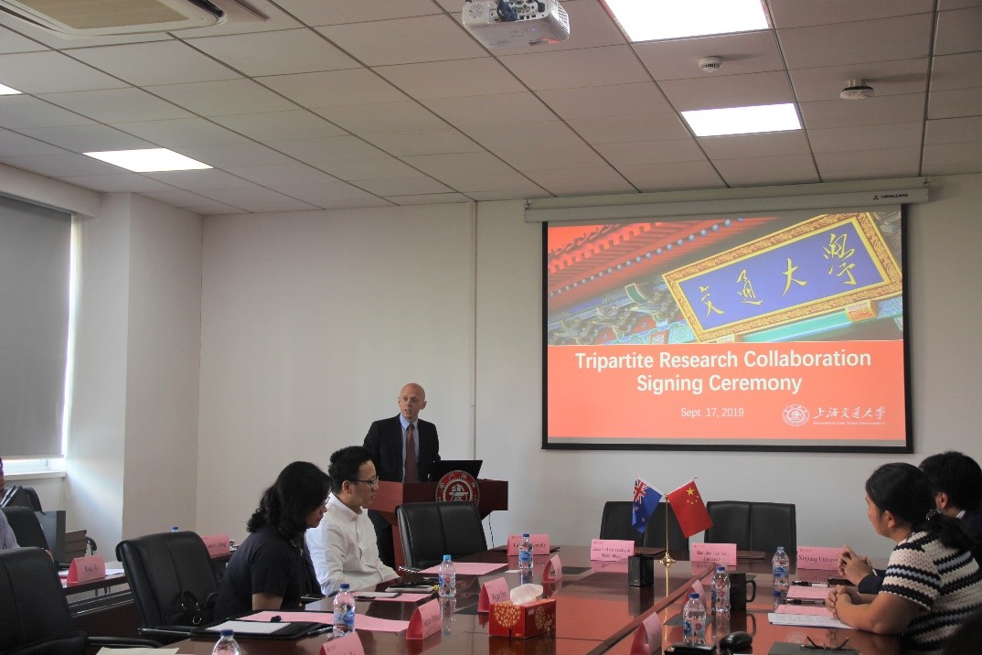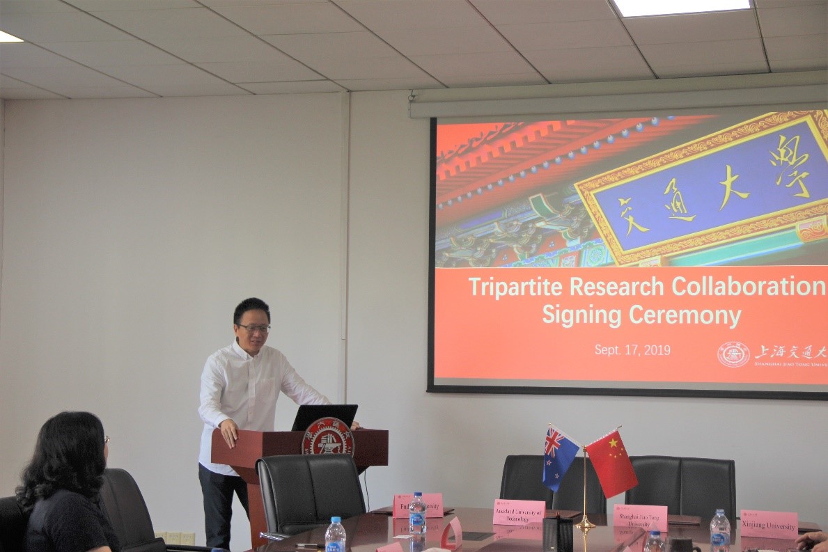 Andrew Robinson对上海交大和成人视频 的热情接待表示感谢。他说,中国是新西兰全球五大研究合作伙伴之一,他们认识到中国一直致力于加强东部和西部地区合作与发展,他们也在积极寻找新西兰可以参与其中的机遇。该协议的签订正体现了新西兰与中国在科学研究领域的联系。奥克兰理工大学与上海交大、复旦大学、新疆大学的合作将跨越生物医学、心理学、心理健康、公共卫生、食品科学等医药卫生研究领域,为四所大学今后更进一步的交流开辟了新的篇章。