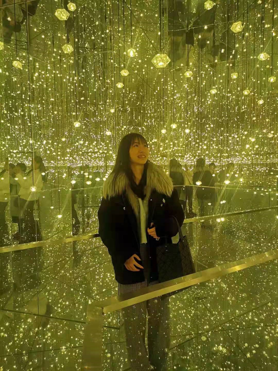 两个星空主题的展厅是艺术馆中互动体验最佳的场景。浪漫星空的展厅中昏暗的房间里有点点钻石般闪烁的灯光,让人感觉空中的繁星触手可及。而另一个星空主题的镜花宫中异常明亮和绚丽,踏上玻璃九曲桥,被水晶珠帘拥抱,置身其中,感觉自己也在闪耀着光芒,每一种颜色都不想错过。