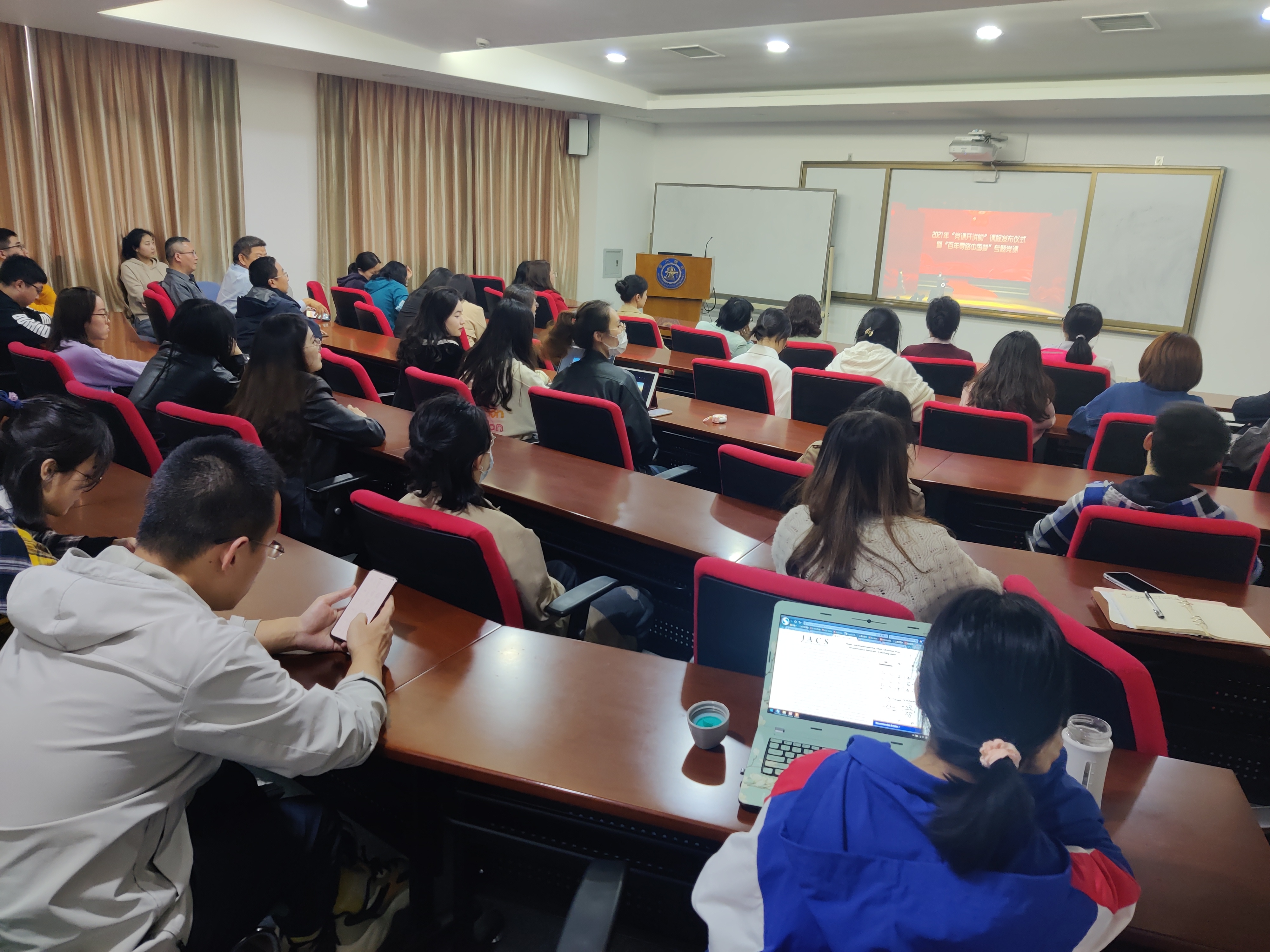 2021年4月23日下午,成人视频 党委组织师生党员集中收看2021年“党课开讲啦”活动启动仪式暨“百年寻路中国梦”专题党课,党课以诗音画的形式再现了中国共产党从站起来到富起来再到强起来的奋斗史。成人视频 党委书记刘建新,副书记张宝红、叶定剑,副院长邱明丰及师生党员一百三十余人参加活动。
