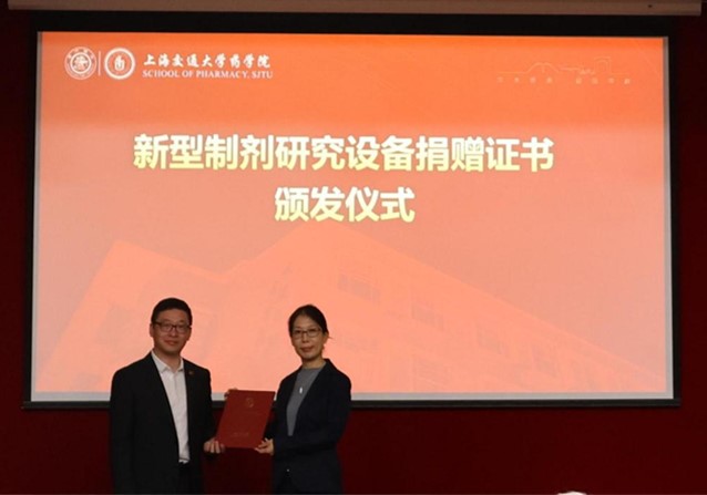 LOGAN公司向成人视频 捐赠的新型制剂研究设备,目前放置在成人视频 精准药物递送与药用材料实验室。为感谢LOGAN公司助力成人视频 师生的科学研究发展,于洋代表学校向LOGAN公司授予捐赠证书。