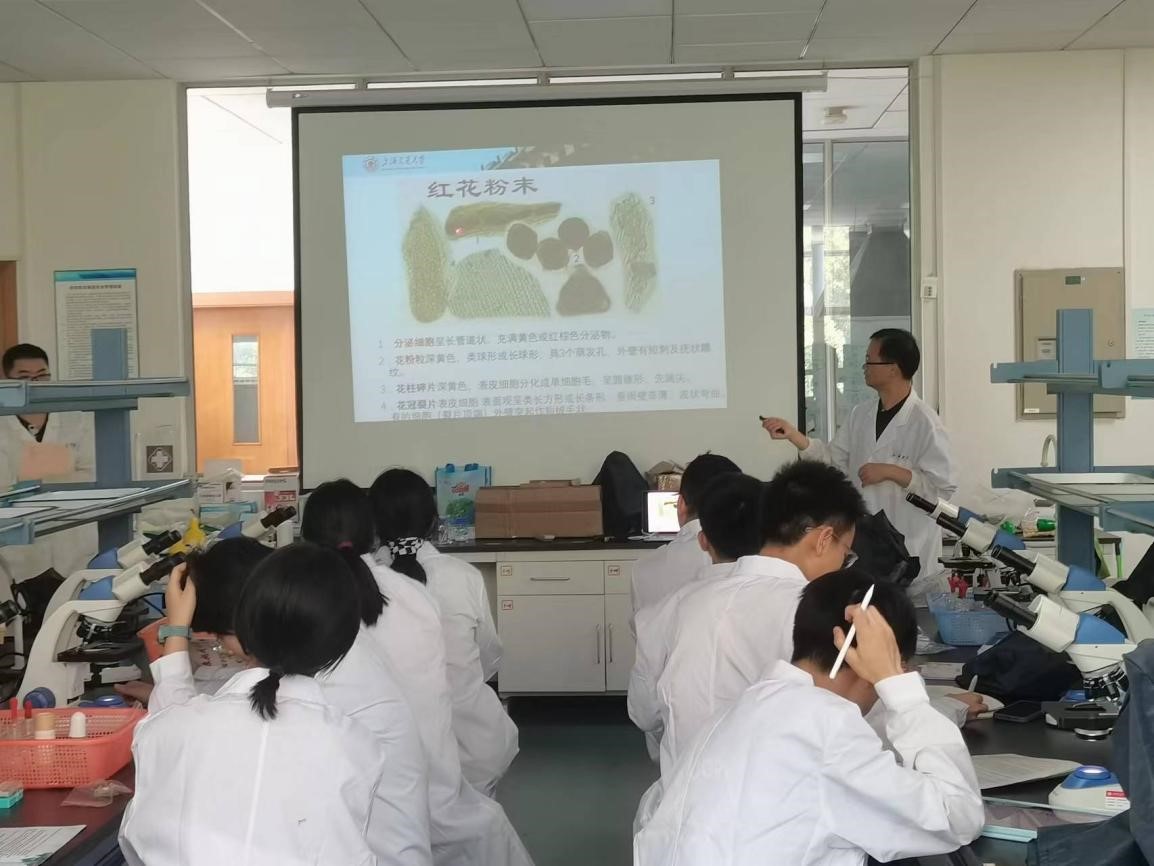 下午,王梦月老师以经典的红花、藏红花的显微鉴定实验给同学们对中药学实验进行了生动的介绍。