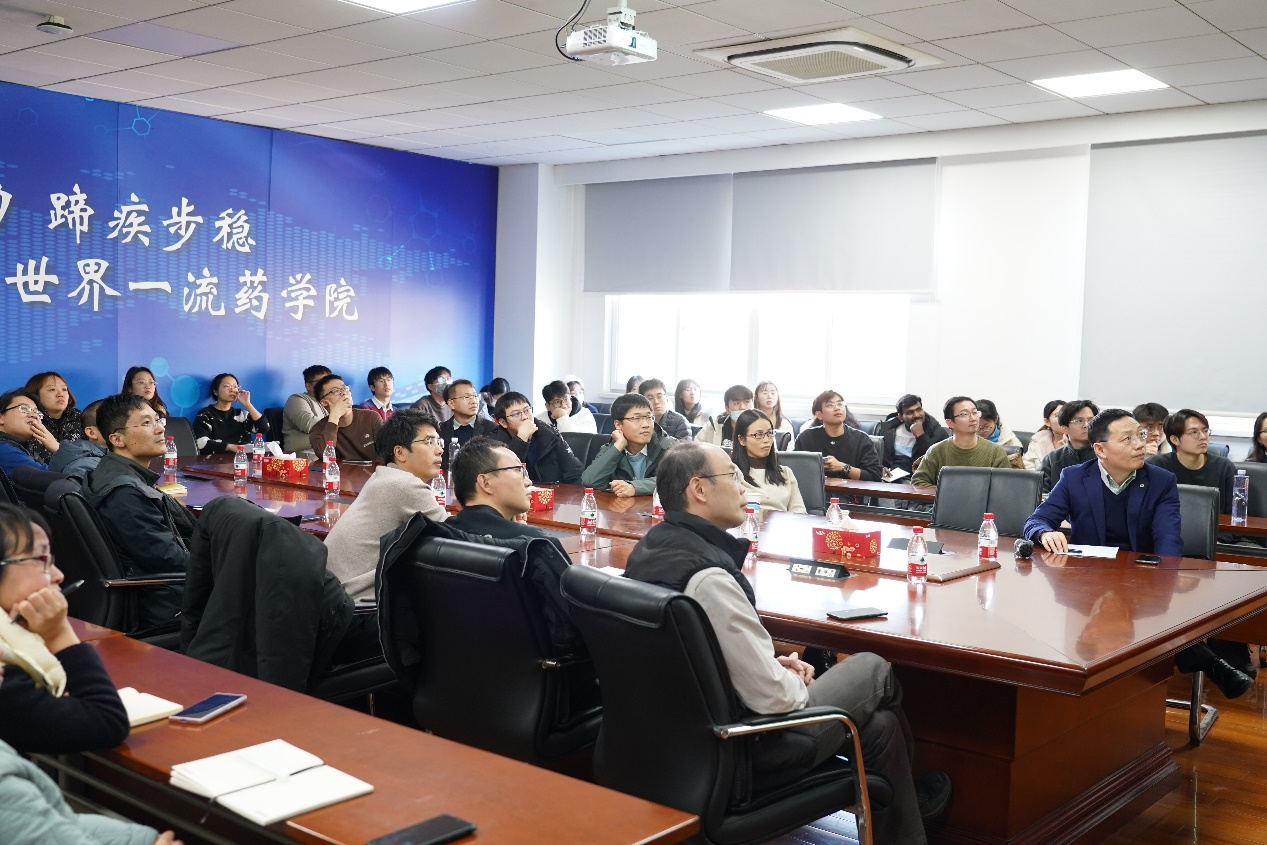 12月27日,美国西奈山医学院讲席教授金坚受邀访问成人视频 进行学术交流,做客“致远药学大师讲坛”并作《Discovery of Novel Degraders and Development of New Approaches to Target Undruggable Proteins》学术报告。成人视频 院长张翱主持报告会,相关师生代表50余人参加。