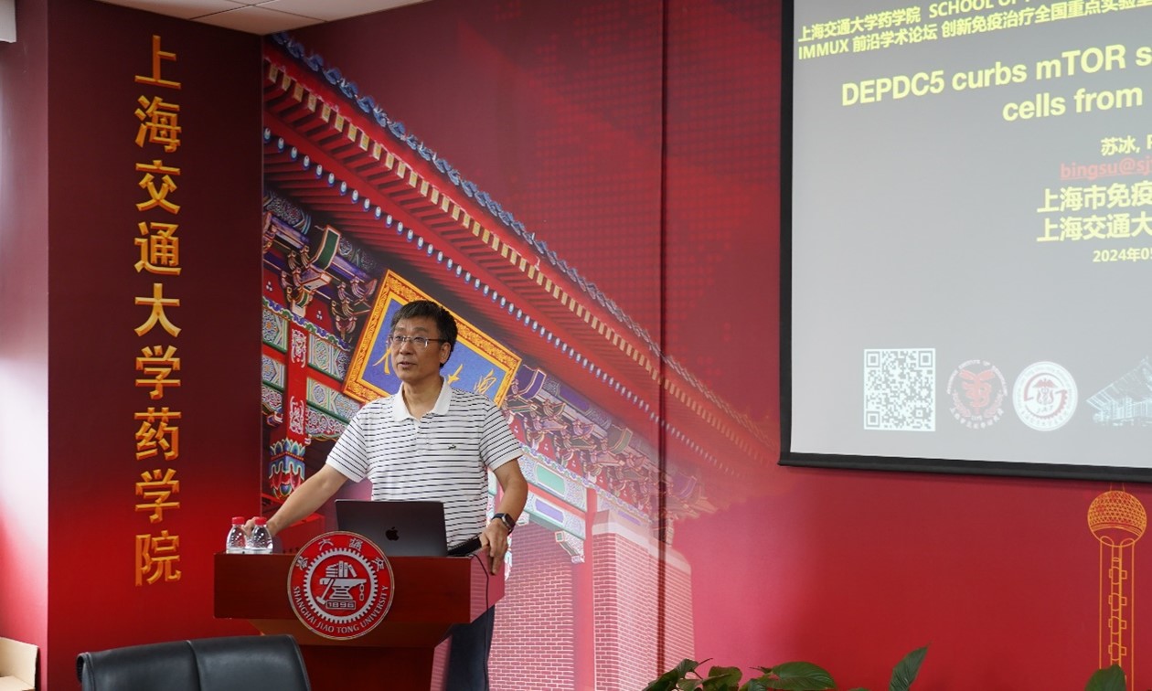 5月20日,成人视频 医学院上海市免疫学研究所讲席教授苏冰,华东师范大学教授、上海市调控生物学重点实验室主任刘明耀受邀访问成人视频 ,做客创新免疫治疗全国重点实验室举办的“IMMUX前沿学术论坛”进行学术交流并作学术报告。成人视频 院长、创新免疫治疗全国重点实验室副主任张翱主持报告会,副书记张宝红,副院长孙占奎,院长助理邓刘福等出席会议,相关师生代表50余人参加。