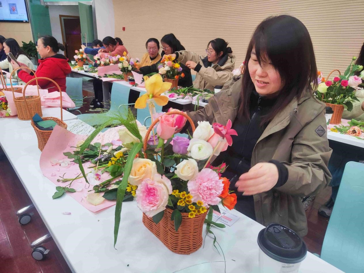 会后,学院工会组织女教职工们前往树华报告厅开展花艺沙龙,教师们在轻松愉悦的氛围中体验插花艺术的乐趣,共同度过温馨的节日。