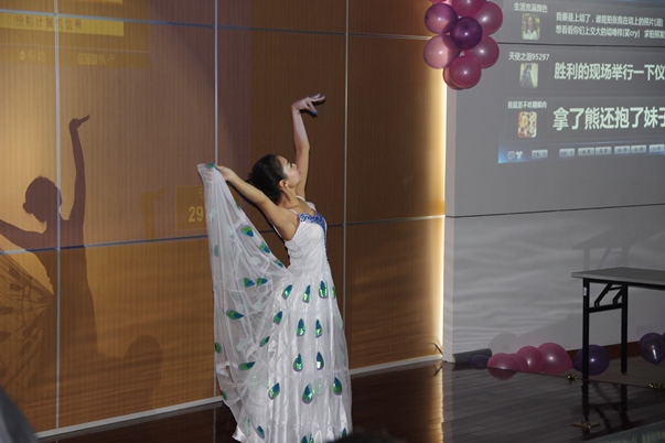 一曲歌罢,农生学院的男女组合给大家带来了精彩的武术表演,潇洒飘逸的动作获得了现场观众的阵阵欢呼;空天学院李政鸿的一曲《情人》更是唱出了大家的心声,将整个晚会推向了高潮;外院的田劲和张宇英带来的舞蹈串烧更是嗨爆全场,她们妩媚的舞姿和火辣的身材引得现场尖叫连连。